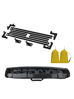 Butterfly QR Set od Udengo zawiera wszystkie elementy potrzebne do zbudowania stabilnej , lekkiej ramy. Został zaprojektowany tak, aby zapewnić szybki montaż i montaż. Możesz go użyć do podtrzymania jedwabiu , kraty lub innych tkanin modyfikujących światło . Rozmiar ramy można zmieniać dodając lub usuwając kwadratowe rurki - np. dodanie dwóch 4-calowych rur da ramę o wymiarach 10 x 6 cali. Zestaw QR zawiera dwa trwałe uszy Quick Release, kompatybilne z większością uchwytów dostępnych na rynku.
