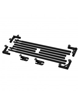 Butterfly QR Set od Udengo zawiera wszystkie elementy potrzebne do zbudowania stabilnej , lekkiej ramy. Został zaprojektowany tak, aby zapewnić szybki montaż i montaż. Możesz go użyć do podtrzymania jedwabiu , kraty lub innych tkanin modyfikujących światło . Rozmiar ramy można zmieniać dodając lub usuwając kwadratowe rurki - np. dodanie dwóch rur 4' da ci ramę 12' x 8'. Zestaw QR zawiera dwa szybkozłączki kompatybilne z większością uchwytów dostępnych na rynku.