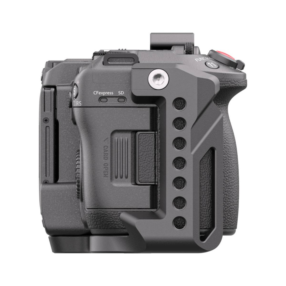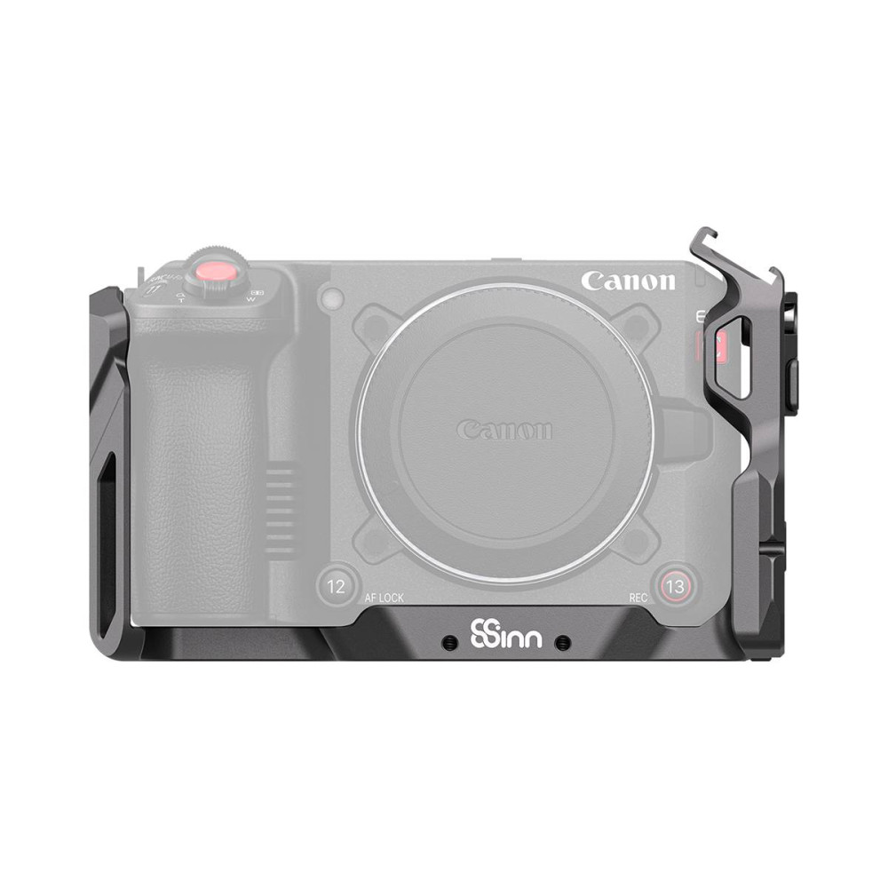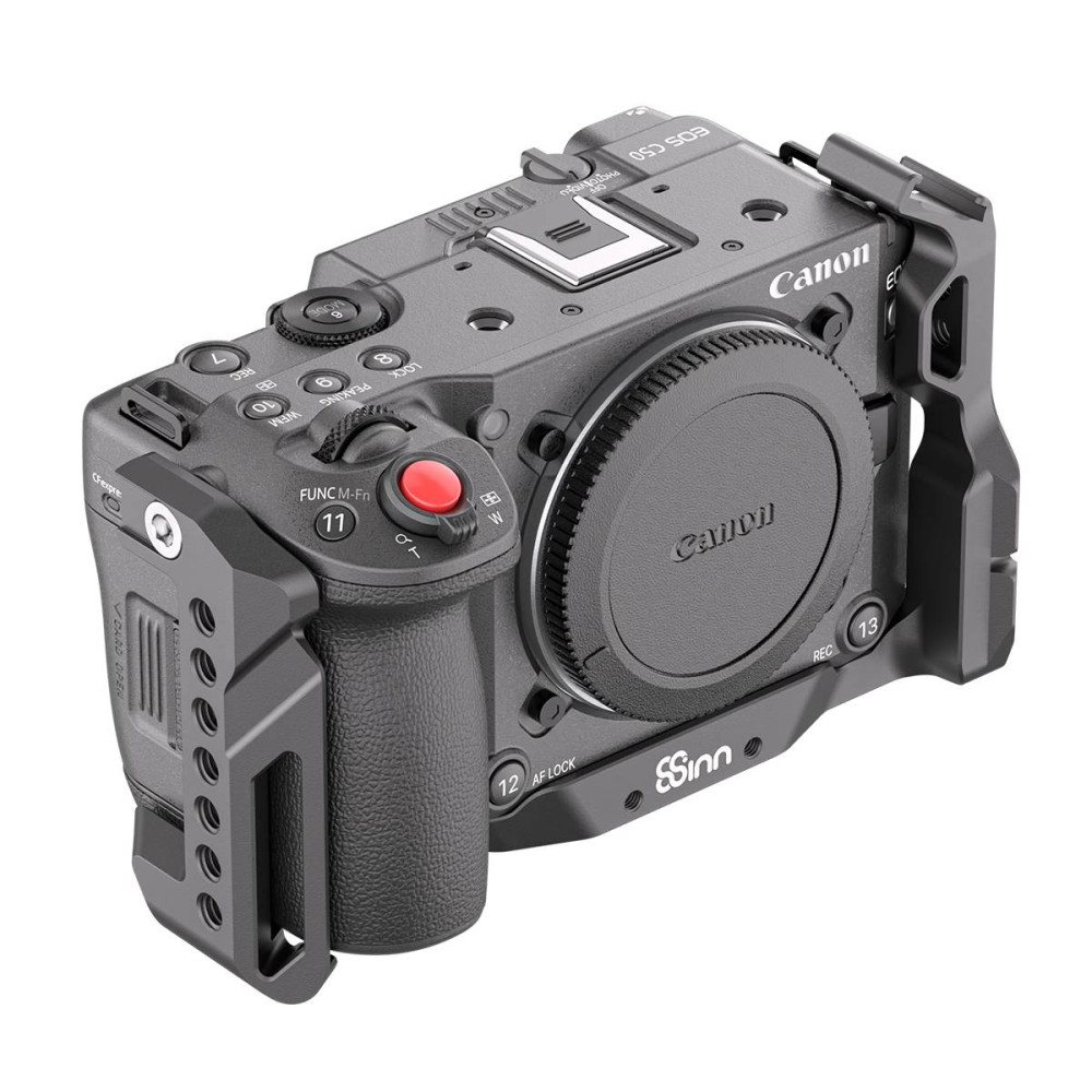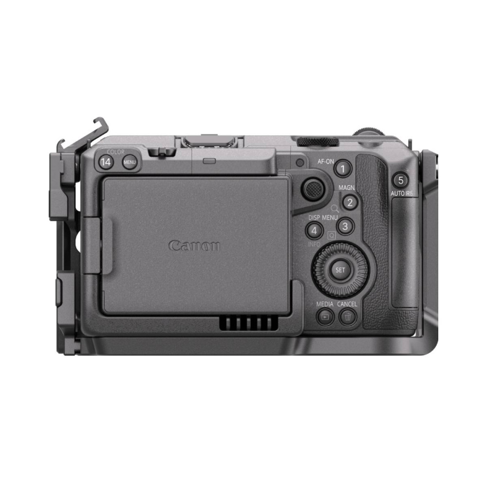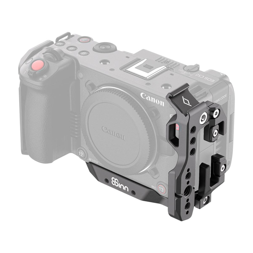 Klatka na kamerę 8Sinn dla Canon C50 to dopasowana, lekka aluminiowa klatka zaprojektowana w celu usprawnienia pracy filmowej bez zbędnych kilogramów. Kluczowe cechy obejmują otwartą konstrukcję zapewniającą pełny dostęp do funkcjonalnych przycisków kamery, wbudowaną bezpieczną szynę NATO i wiele opcji montażu: 1/4" punkty montażowe, 3/8" punkt montażowy z kołkami ustalającymi ARRI i mocowanie zimnej stopki. Zacisk HDMI jest również dołączony do zabezpieczenia kabla. Klatka zapewnia trzy bezpieczne punkty mocowania do korpusu kamery, zapewniając stabilność podczas użytkowania. Klatka jest również kompatybilna z adapterami Canon Mount. Wszystkie gniazda, porty i przyciski w kamerze C50 są łatwo dostępne, co zapewnia płynną pracę. Kompaktowa, ale wszechstronna klatka 8Sinn Canon C50 jest idealnym wyborem dla profesjonalnych kamerzystów i twórców treści poszukujących niezawodnej ochrony i rozszerzonych możliwości montażu.
