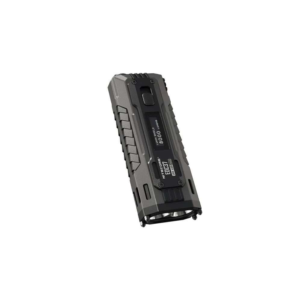 Dzięki wbudowanemu akumulatorowi USB-C o pojemności 8000 mAh, EDC37 zapewnia dłuższy czas pracy. Zintegrowany wyświetlacz OLED pokazuje jasność wyjściową w czasie rzeczywistym, poziom naładowania baterii i pozostały czas pracy, zapewniając maksymalną świadomość i kontrolę.