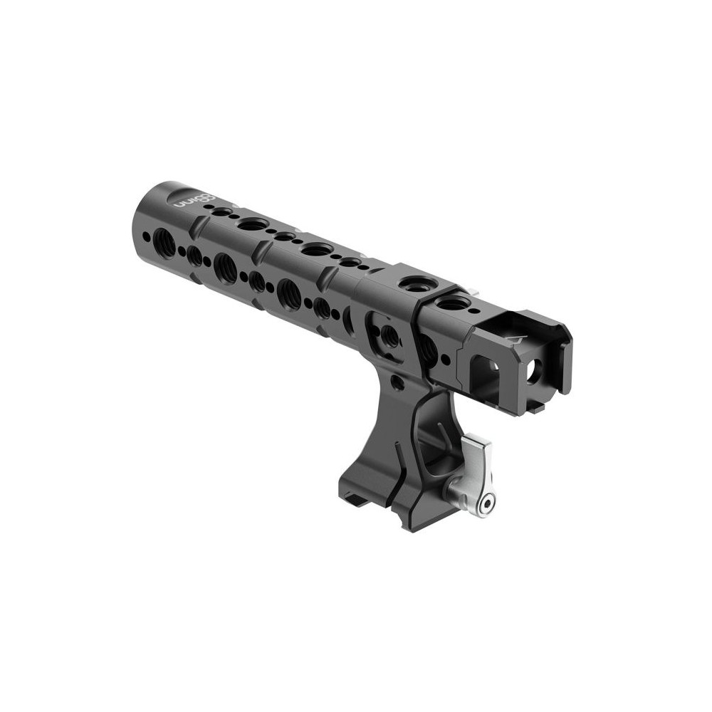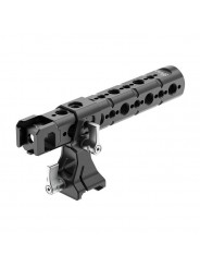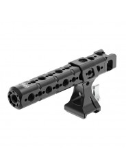 Uchwyt Top Handle Pro V2 oferuje regulację przód-tył i lewo-prawo, umożliwiając ustawienie go dokładnie tam, gdzie jest potrzebny, aby zapewnić najlepszą obsługę i równowagę zestawu kamerowego. Produkt oferuje dwa mocowania typu cold shoe i dwa rodzaje otworów gwintowanych: 1/4" i 3/8" z pin-lockami i standardowym rozstawem gwintów Arri wynoszącym 12,7 mm. Rozwiązanie montażowe uchwytów to bezpieczna szyna NATO, która łączy się z górną częścią klatki za pomocą dwóch śrub 1/4 " - rozwiązanie szyny NATO to system szybkiego zwalniania, który zapewnia szybkie mocowanie lub odłączanie uchwytu w razie potrzeby.